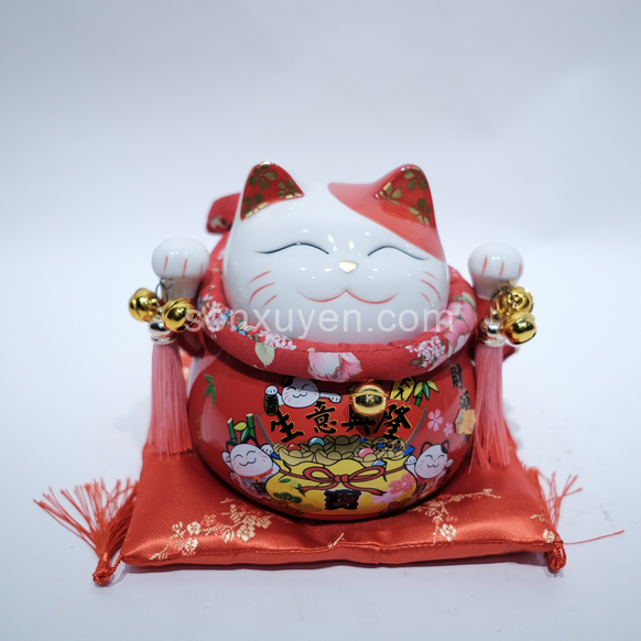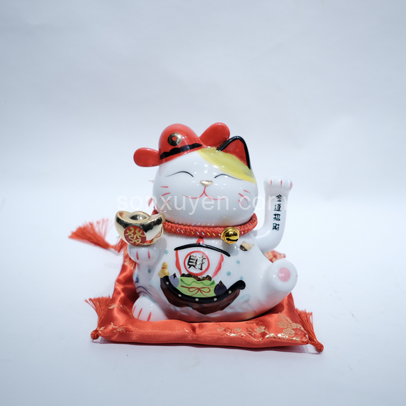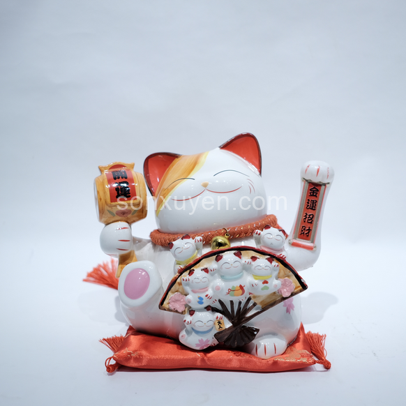 Mèo sứ phúc lộc song toàn tay cầm trống cao 20 cm dài 26 cm rộng 18 cm