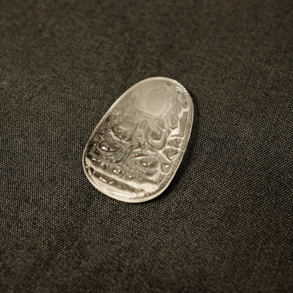 Mặt phật Thiên Thủ Thiên Nhãn Bồ Tát màu trắng dài 3,5 cm rộng 2,3 cm. Đã khai quang.
